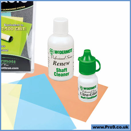 The Shaft Maintenance Kit comes with everything you need to keep your shaft playing at peak performance. It includes a Leather Conditioning Pad, McMagic Burnishing Papers, Ultra-Glide Conditioner and Renew Shaft Cleaner.