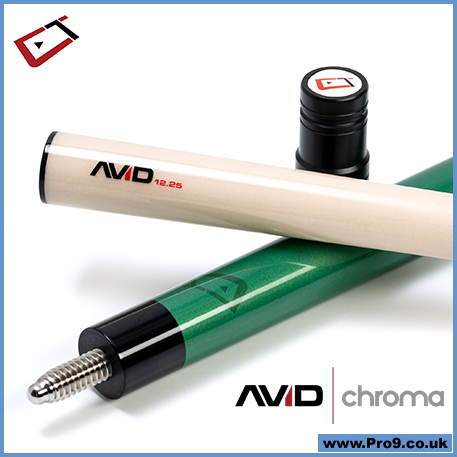 Dripping with High-performance technology, AVID Chroma series cues are over-saturated with features competitors demand. Featuring the Player’s Choice of 11.75mm, 12.25mm, or 12.75mm AVID glass-bonded low-deflection shafts, kiln dried vacuum sealed maple butts incased within Cuetec’s proprietary two-part resin coating, Duo smart extension ready bumper, and the second generation Acueweight system, make Chroma the undisputed performance and value champion.