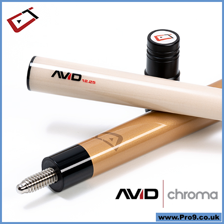 Dripping with High-performance technology, AVID Chroma series cues are over-saturated with features competitors demand. Featuring the Player’s Choice of 11.75mm, 12.25mm, or 12.75mm AVID glass-bonded low-deflection shafts, kiln dried vacuum sealed maple butts incased within Cuetec’s proprietary two-part resin coating, Duo smart extension ready bumper, and the second generation Acueweight system, make Chroma the undisputed performance and value champion.