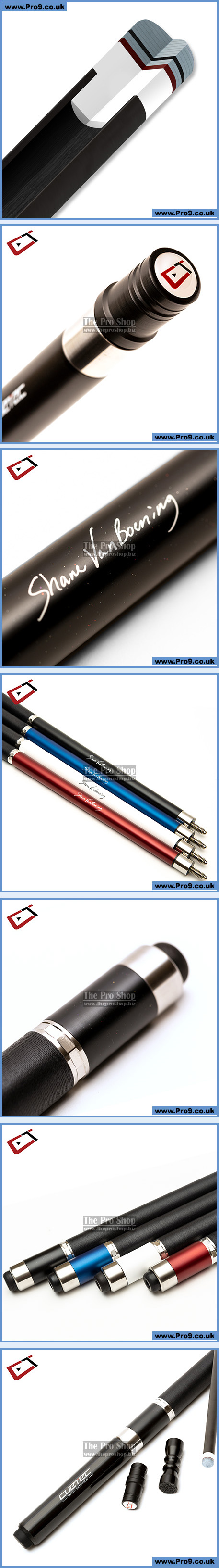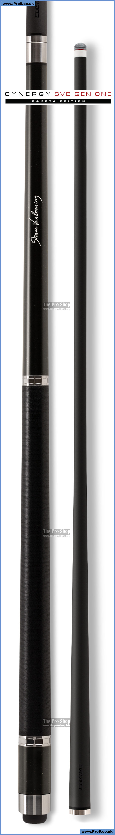 Cynergy SVB GEN ONE cues are constructed of A+ grade kiln dried Canadian maple and are paired with the new Cynergy 15K carbon fiber composite shaft. Each cue features stainless steel 3D rings, joint collars and butt caps, a black Irish linen wrap and the signature of Cuetec Pro and five-time U.S. Open Champion Shane Van Boening.