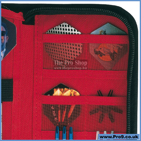► 14 accessory pockets for spare shafts, flights and sundries