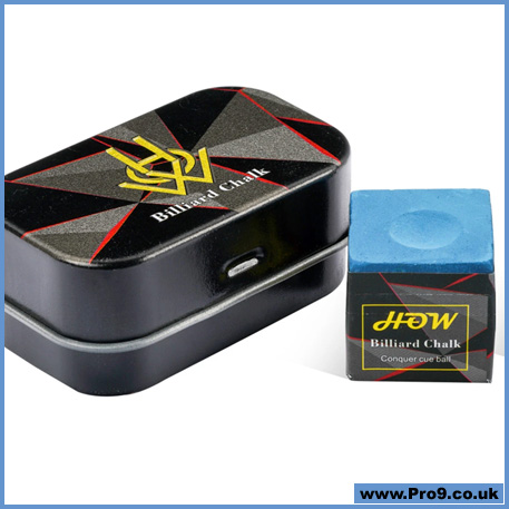 HOW Premium Chalk will provide you with less miscues and more spin! Supplied inside a light metal box with 2 pieces of chalk allowing you to carry it around nice and clean in your cue case!