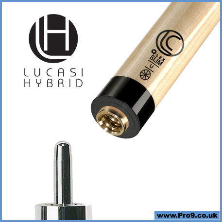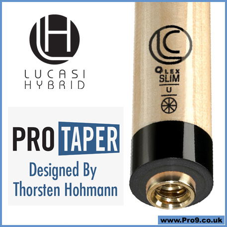 Lucasi Hybrid Zero Flex Slim shafts take the performance of the Zero Flex technology one step further. This super slim line shaft offers all of the features of the original Zero Flex shaft with a smaller 11.75mm tip with a European (straight) taper for a true-to-aim shaft that provides the maximum amount of cue ball control.