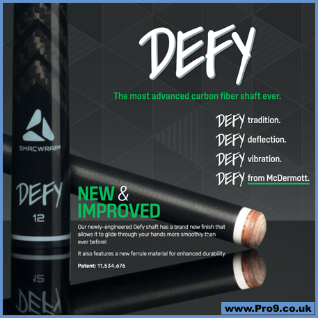 Defy carbon fiber shafts have a special finish that contains a slip agent. This helps keep the shaft slick and resists chalk, dirt, and hand oils from soiling the shaft. For peak performance, you may periodically clean the shaft by wiping it down using only water on a lightly damp soft cloth. Use a dry soft cloth to restore the smooth and slick condition, rub briskly until dry for a friction-free stroke.