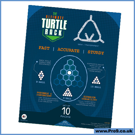 Template racks are everywhere. You see them in pool halls and in the top tournaments in the world, and you would be hard pressed to find one much better than the Ultimate Turtle Rack! This innovative rack is super versatile and designed for 8, 9, or 10 ball. It is made from super thin plastic that is designed to keep a tight rack without getting in the way.