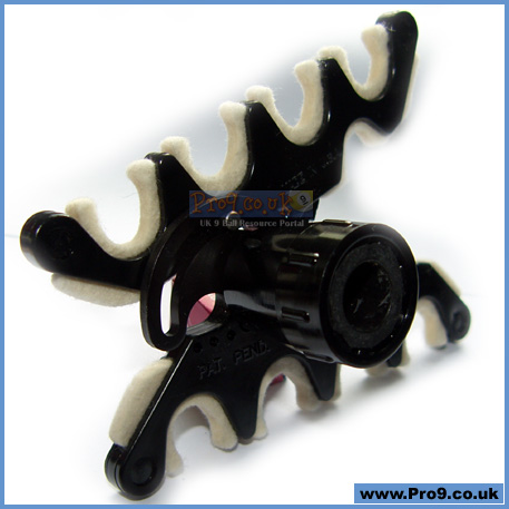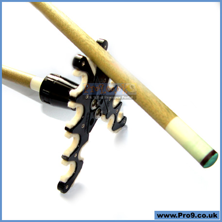 - The spare cue is held by a soft rubber ring, and a gentle twist opens or closes the jaw style precision mechanism.
