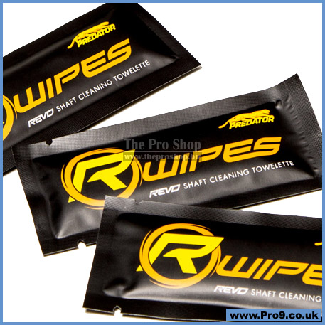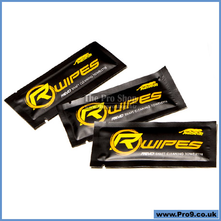 Safely and quickly clean your Predator REVO High-Performance Shaft. Each pack contains 3 individually packaged 5” x 8.5” R-Wipe towelettes developed to keep the low frictions surface of your REVO shaft in tip-top condition.