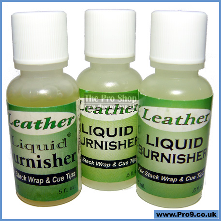 • Clear liquid burnish is perfect for layered leather cue tips.