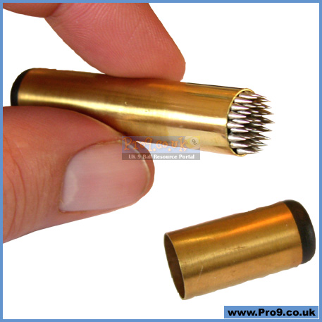 - Held like a pen, the tool is gently applied to the surface of the glazed tip to create a dimpled surface that will improved chalk retention.