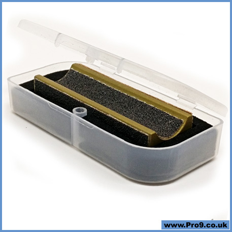 SHAPE - use the top of the tool radius abrasive to initially shape or re-shape tip to perfect sized radius. Slowly rotate tip and stroke the length of the tool across the top of the tip until uniform radius is achieved.