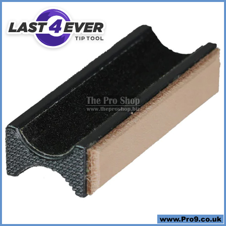 SCUFFER - use the radius edge of the tool to scuff your tip to maximize chalk holding properties. Simply press the tool firmly against the tip and rock across the tip surface, rotate the shaft and repeat until the entire tip surface has been textured. You should not remove tip material while scuffing.