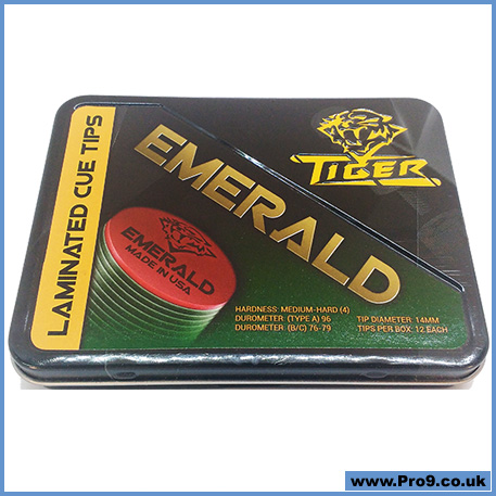 After many years of research and development & inspired by player requests, Tiger has created the latest masterpiece, Emerald Laminated Cue Tips. New (medium hard) Emerald laminated cue tips are made with recycled pig leather splits and laminated with water based custom-made adhesives to get the maximum strength for lamination. Skived with 10 consistent layers in our factory (Burbank, CA) and laminated with Vaculam ( vacuum lamination process ) Emerald tips are the most economic and environmentally friendly laminated cue tips ever.