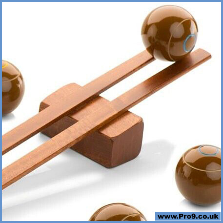 A set of composition 2 1/4" table bowls consisting of 4 pairs of bowls each with the same bias. Supplied with jack chute and 1 3/8" white jack. Designed for playing on a full 9 foot size pool table.