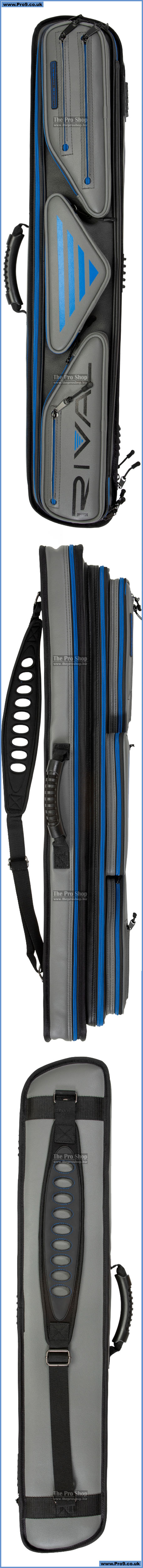 Soft case with capacity for 3 butts, 4 shafts, and accessories.
