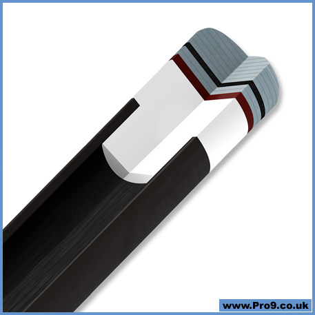 All Cuetec Cynergy carbon composite shafts are constructed with multi-plies of resin-impregnated military grade unidirectional carbon fiber filaments. The diameter of each filament is 7 um(0.007 mm), or about one twelfth of a human hair. The orientation of these carbon fiber filaments is crucial to achieving optimal durability, strength, and performance. During the heat curing process each of these specifically oriented filaments works together to ensure there is zero net displacement. The result is a perfectly straight and ultra-strong shaft.