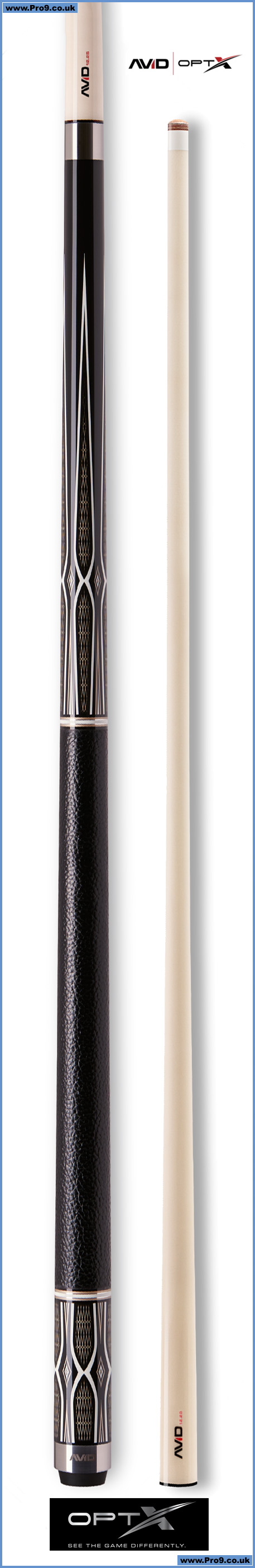 A proper cue can change more than your game’s trajectory, it can change the way you see the game itself. Cuetec’s all-new AVID Opt-X series cues were designed and engineered to do just that. Featuring original intricate designs that create the optical illusion of depth, each AVID Opt-X cue is crafted with A grade kiln-dried, vacuum-sealed hard maple and arrives equipped with the player’s choice of either the AVID 11.75mm, 12.25mm, or 12.75mm glass bonded maple low-deflection shafts. The Opt-X series high-performance features don’t end there, every Opt-X cue includes a moisture shedding Leather-Tec wrap, Cuetec’s second generation Acueweight adjustment and balance system and arrives with a DUO ready extension bumper. Isn’t it time you see the game differently?