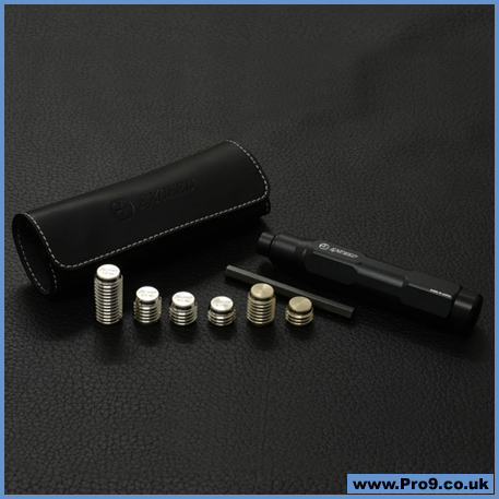 The set consists of six different weight bolts ranging from 0.1 oz, 0.2 oz, 0.3 oz, 0.4 oz, 0.5 oz, and 1.0 oz. Can be used with a single bolt or a combination of two bolts, the range from 0.1 oz to 1.5 oz can be adjusted in 0.1 oz increments.