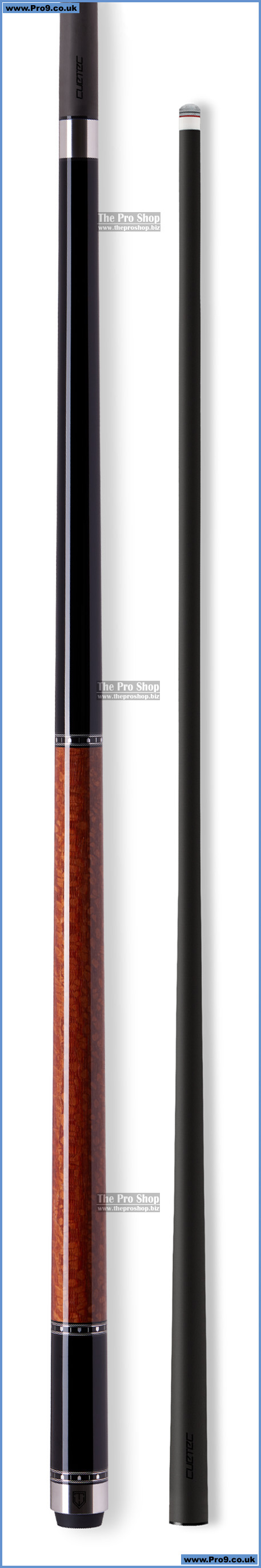 The Cuetec evolution continues with the next generation of Cynergy Truewood Series Cues. Featuring an all-new construction utilizing Cuetec’s Clear-Tec epoxy resin finish for increased stiffness and reduced vibration, every Truewood series cue is enveloped in exotic veneers surrounding a kiln-dried Canadian Maple core and is adorned with precision cut Truewood Shield rings. Available with the “Player’s Choice” of Cynergy 11.8 or 12.5 carbon fiber composite shaft, each Truewood Cue delivers unparalleled hit consistency and feedback.
