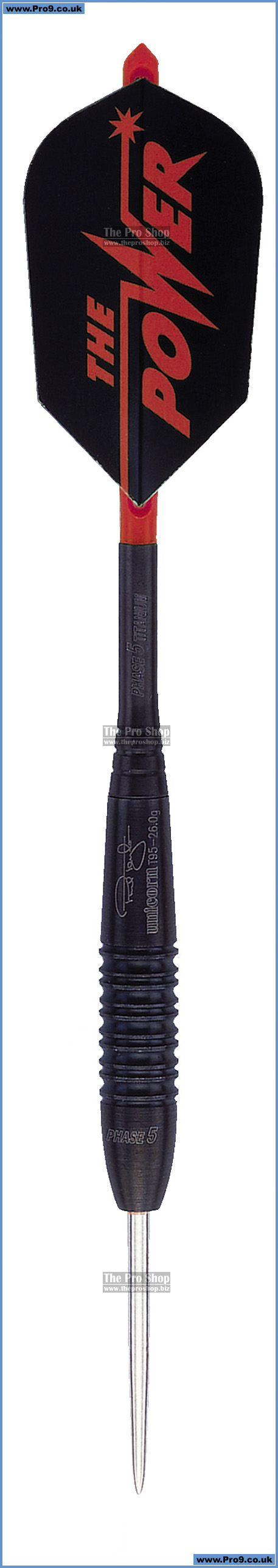 95% Tungsten, available in Natural, Golden or Black Titanium Tungsten finishes. Complete with Phase 5 Titanium shafts and exclusive Power slim flights. Phase 5 barrels and shafts are laser engraved and supplied in a unique Phase 5 superior wallet.