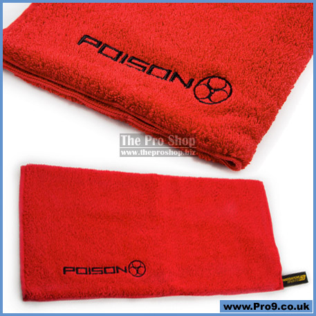 The new 100% cotton Poison Billiards Towel is a convenient way of drying your hands and shaft while you play.