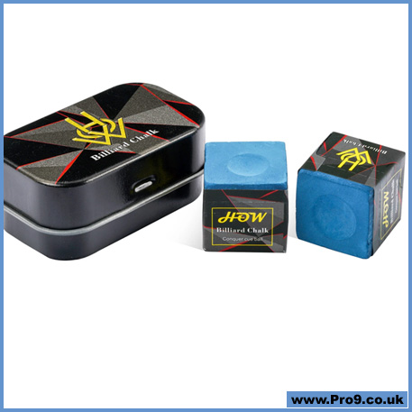 HOW Premium Chalk will provide you with less miscues and more spin! Supplied inside a light metal box with 2 pieces of chalk allowing you to carry it around nice and clean in your cue case!