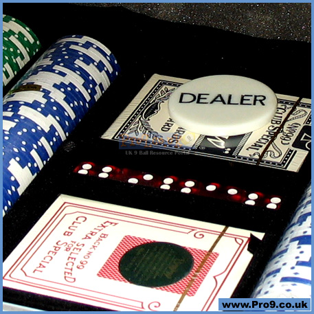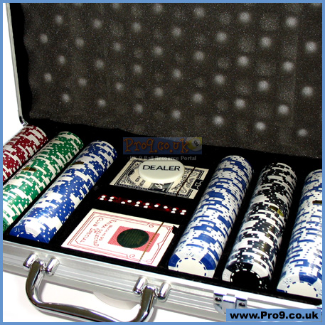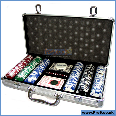 Fantastic padded aluminium case with clear acrylic top window, containing some of the best chips available - top quality, pro weight chips.