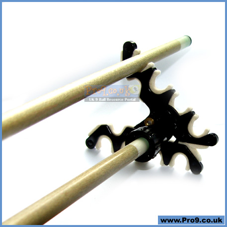 - The spare cue is held by a soft rubber ring, and a gentle twist opens or closes the jaw style precision mechanism.