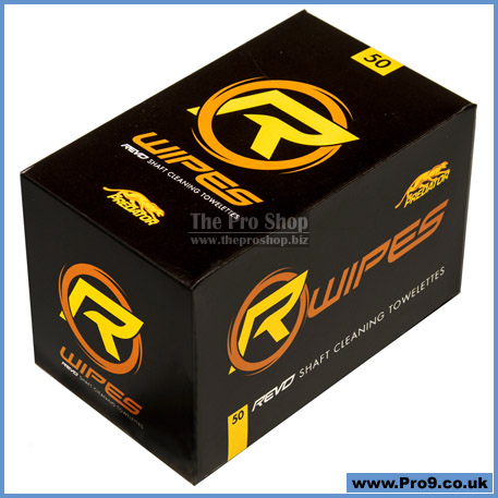 Safely and quickly clean your Predator REVO High-Performance Shaft. Each box contains 50 individually packaged 5” x 8.5” R-Wipe towelettes developed to keep the low frictions surface of your REVO shaft in tip-top condition.
