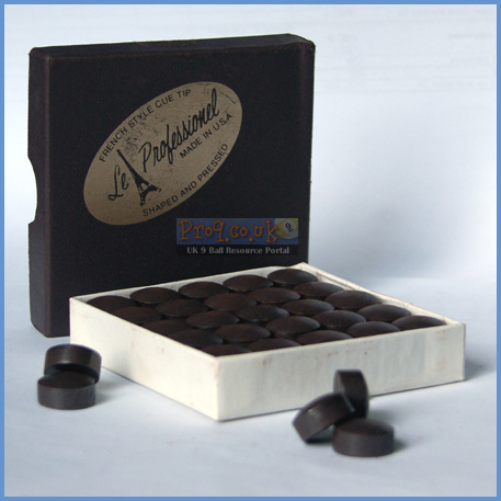 Le Professionel cue tips (or "Le Pro" as they are more commonly known) are sold pre-installed to many of the best cues in the world and are made by the Tweeten Fibre company.