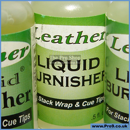 • Clear liquid burnish is perfect for layered leather cue tips.