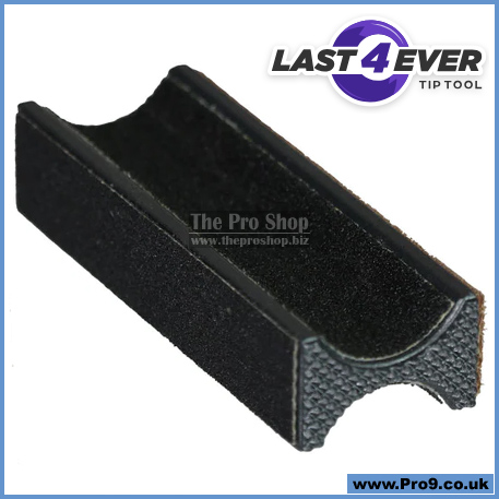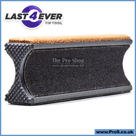 SCUFFER - use the radius edge of the tool to scuff your tip to maximize chalk holding properties. Simply press the tool firmly against the tip and rock across the tip surface, rotate the shaft and repeat until the entire tip surface has been textured. You should not remove tip material while scuffing.