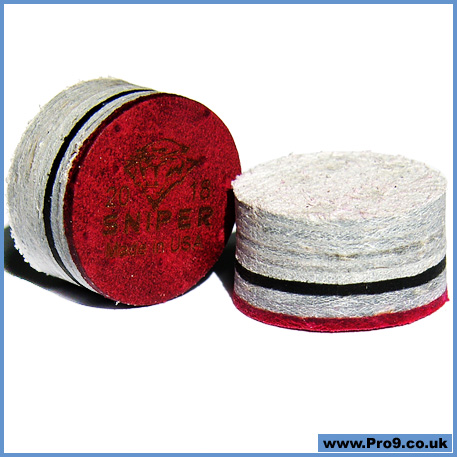 Sniper Laminated Cue Tips are made from a boar hide that is tanned the old fashioned way, under the ground. Treated slowly and without any chemicals, each hide takes up to a year to tan completely. The hide is then treated in our factory to give the sniper tips characteristics that will improve your game. The VACULAM is a unique vacuum lamination process that eliminates air between the layers and within the leather. We have also added a new treatment. "APP" advanced Pressurized Process, to make these cue tips adaptable to any player or game, regardless of style. Black layer will warn the player when to think about changing the tip, while giving the Sniper its genuine look. Sniper tip will give you maximum control, consistency and least amount of deflection a Soft-Medium cue tip can offer.